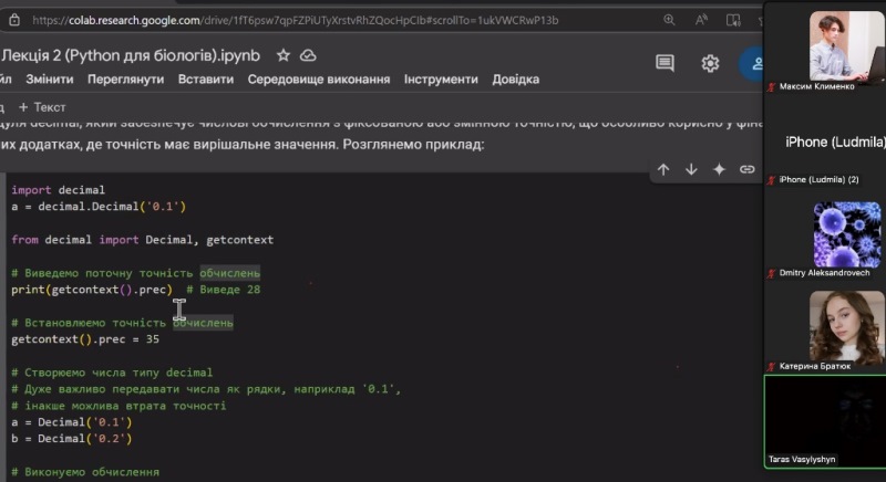 Зокрема здобувачі третього курсу освітньо-професійної програми «Біотехнології: фармацевтична, промислова, харчова, природоохоронна» Максим Клименко та Таїсія Морщ долучилися до вивчення курсу «Python для біологів», розробленого спеціально для інтеграції інформаційних технологій у сферу біотехнологій. Вони активно практикуються у написанні коду на мові програмування Python.