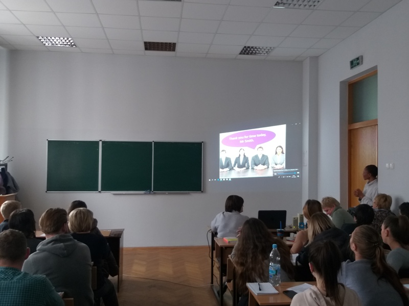 «Як підготуватись до співбесіди англійською» - такою була сьогодні тема лекції з носієм мови Іфомою Саймон (Ifeoma Simon), викладачем компанії «Speak Up». Лекцію для усіх бажаючих студентів університету організувала кафедра іноземних мов професійного спрямування.
