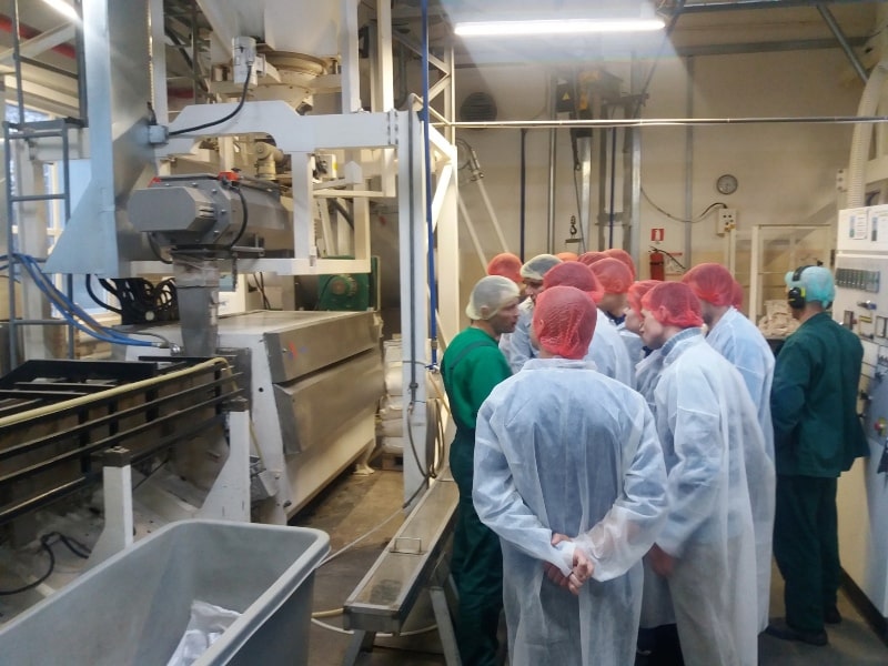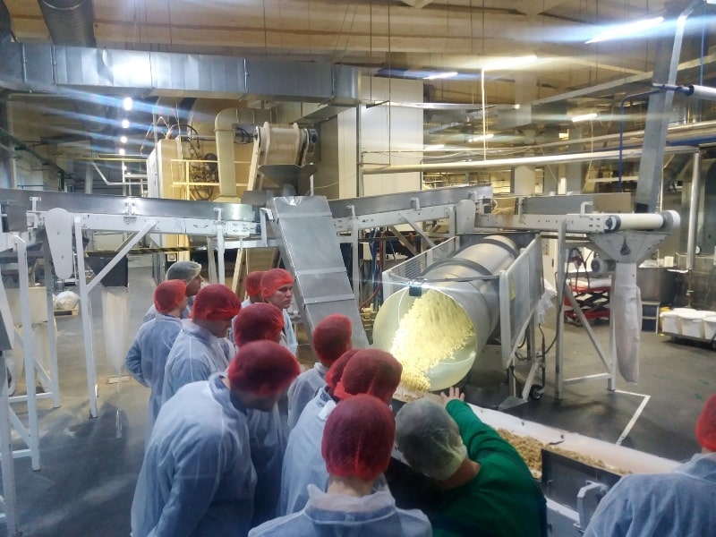 Студенти кафедри машин і апаратів харчових та фармацевтичних виробництв ознайомились із сучасним виробництвом пластівців, мюслей, каш, батончиків та іншої смачної і корисної продукції. Приємно, що на заводі працюють випускники нашого механічного факультету (нині – Навчально-науковий інженерно-технічний інститут ім. акад. І.С. Гулого), зокрема, головний механік Андрій Лещук детально продемонстрував і пояснив студентам будову і роботу обладнання для екструдування продукції, її подальшого оброблення і пакування.