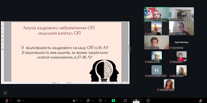 Враховуючи, що менше ніж за місяць робоча група має підготувати відомості самооцінювання ОП для проведення акредитаційної експертизи, то увагу учасників засідання не оминуло питання готовності до такої надважливої для усього колективу інституту події.