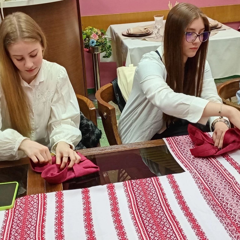 Знання, отримані під час вивчення фахових дисциплін, ініціативність, власне бачення та практичний досвід роботи у найкращих закладах ресторанного господарства дозволили здобувачам освіти скласти програму заходу, для наочності зняти та змонтувати ролик, розподілити завдання, організувати та вдало провести майстер-клас з тематичного сервірування столів і складання серветок до різних видів обслуговування.