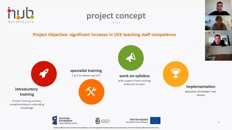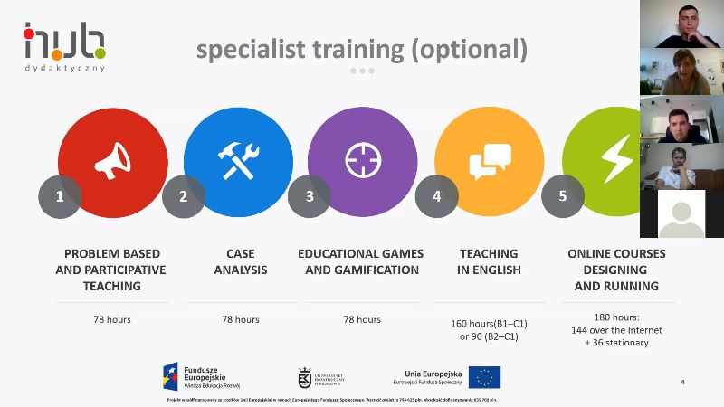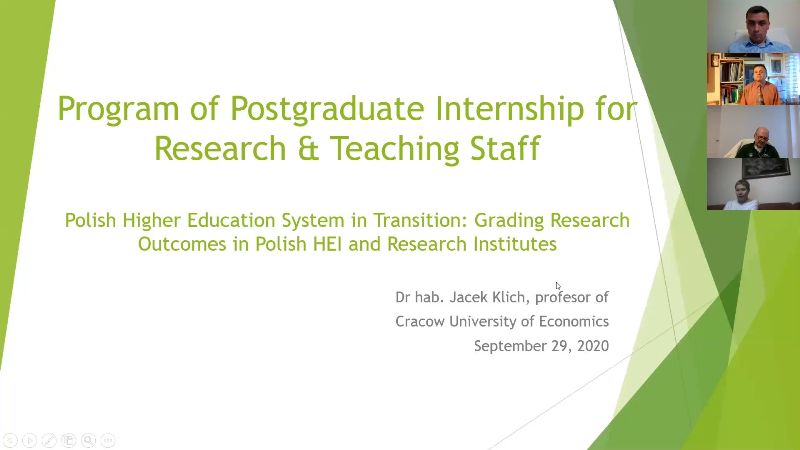 У форматі Zoom-конференцій фахівці освітянської галузі Польщі розповіли про особливості європейської та польської систем вищої освіти, організацію мобільності студентів і викладацького складу в Європейському Союзі, історію розвитку онлайн-навчання та зміни дидактичного процесу в час пандемії, використання ІТ-технології на заняттях, а також організований Краківським економічним університетом проєкт підготовки та розвитку викладачів «HUB UEK».