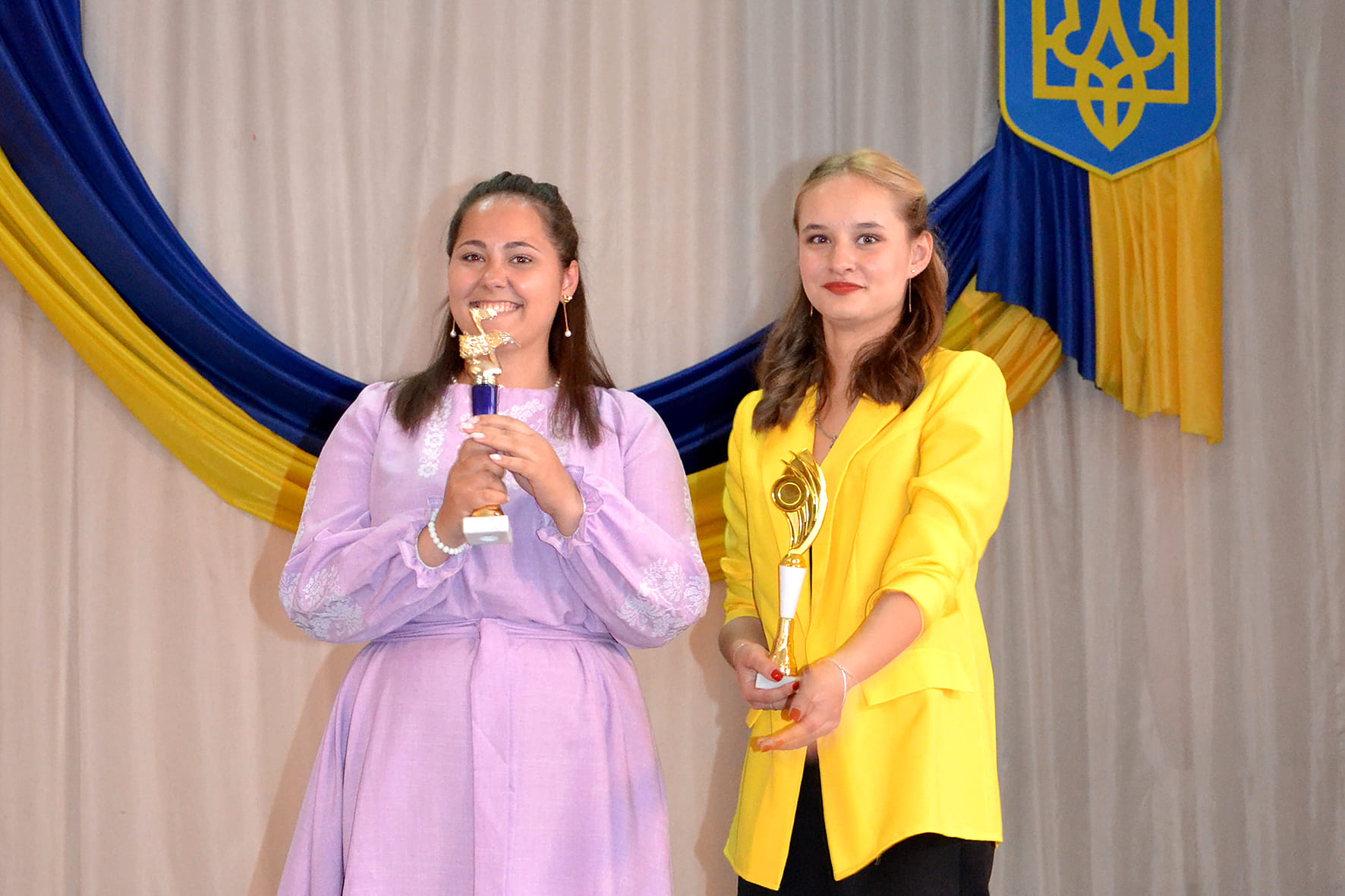 Заступниця голови студентського самоврядування коледжу Вікторія Чубін вручила пам’ятні статуетки Яні Пожар і Андрію Тарасюку – випускникам, які вибороли звання «Зірка коледжу-2024» у номінаціях «Зірка художньої самодіяльності коледжу-2024» і «Зірка – громадський діяч коледжу-2024».