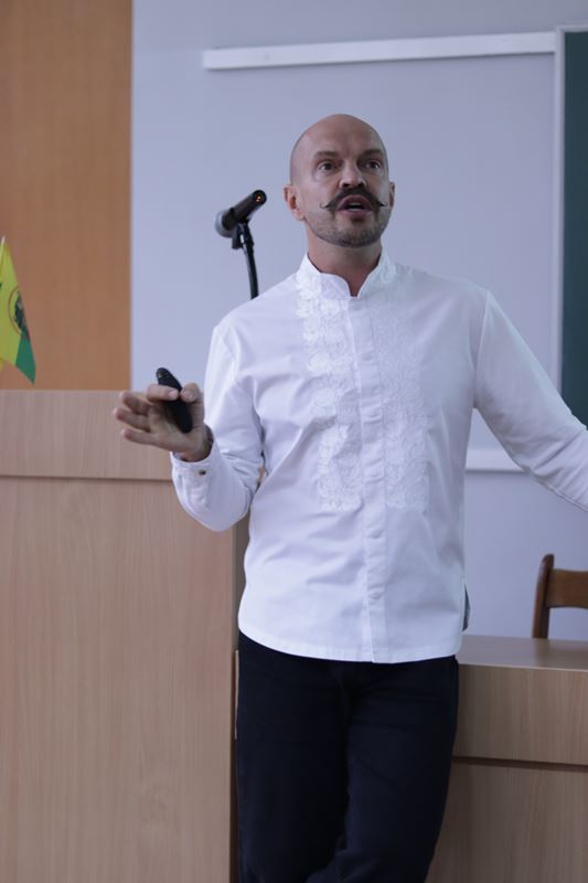 Днями на запрошення завідувачки кафедри готельно-ресторанної справи, доцентки Лариси Шаран до університету завітав Володимир Ярославський з лекторієм «Філософія роботи».