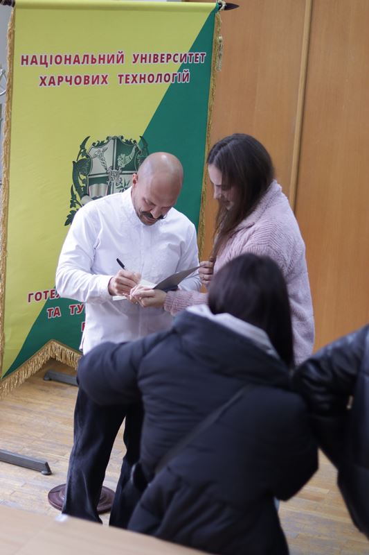Гостьовий спікер протягом освітнього івенту акцентував увагу студентів на важливості безперервного навчання і гастроекспериментів для професійного становлення, пошуку власної автентичності та формування особистого бренду.