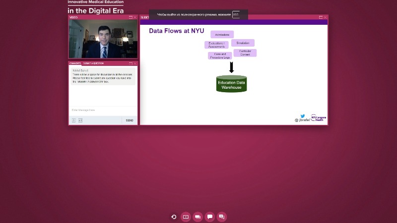 Основна промова симпозіуму «Інноваційна медична освіта в цифрову еру: потреби, тенденції, можливості» була представлена доктором медичних наук, професором теорії та практики медицини Герсі Гарвардської медичної школи, головою кафедри медицини та головним лікарем клініки «Brigham and Women’s» Джозефом Лоскальцо.