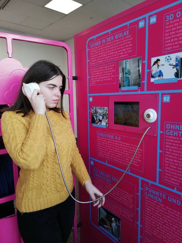 Об’єднавши студентів групи ТУ 3-13 факультету готельно-ресторанного та туристичного бізнесу і груп ТІ 1-2, 1-4 та 1-5 Навчально-наукового інституту харчових технологій, які вивчають німецьку мову, за ініціативи старшого викладача кафедри іноземних мов професійного спрямування Лади Коваленко та її колеги Олени Грибанової була відвідана цікава виставка. Виставка організована товариством Макса Планка «ФРН – країна винахiдникiв».