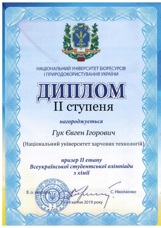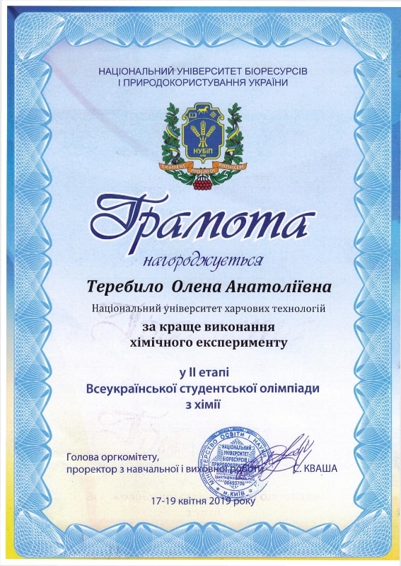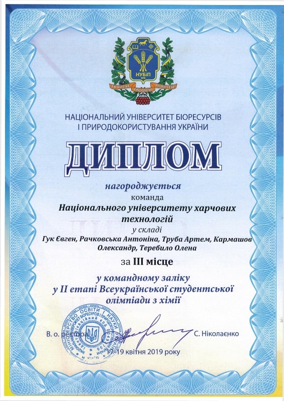 Упродовж 17-19 квітня 2019 року в Національному університеті біоресурсів та природокористування України відбувся другий етап Всеукраїнської хімічної олімпіади.