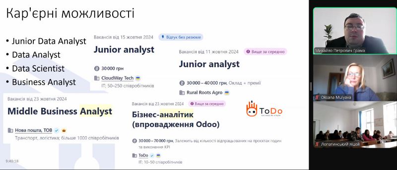 Сьогодні відбулася гостьова лекція «Професія – аналітик даних» старшого викладача кафедри інформаційних систем, штучного інтелекту та кібербезпеки Михайла Грами, яку він прочитав у Лопатинському ліцеї Лопатинської громади Радехівського району Львівської області