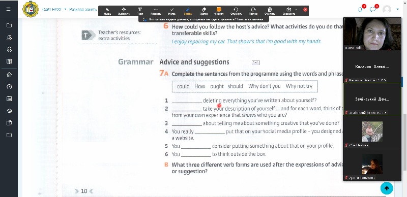 Доцентка кафедри іноземних мов професійного спрямування Ганна Бойко 4 листопада 2022 року провела відкрите практичне заняття «Careersand Advice. Advicesand Suggestions» для здобувачів вищої освіти групи ГС-2-5.