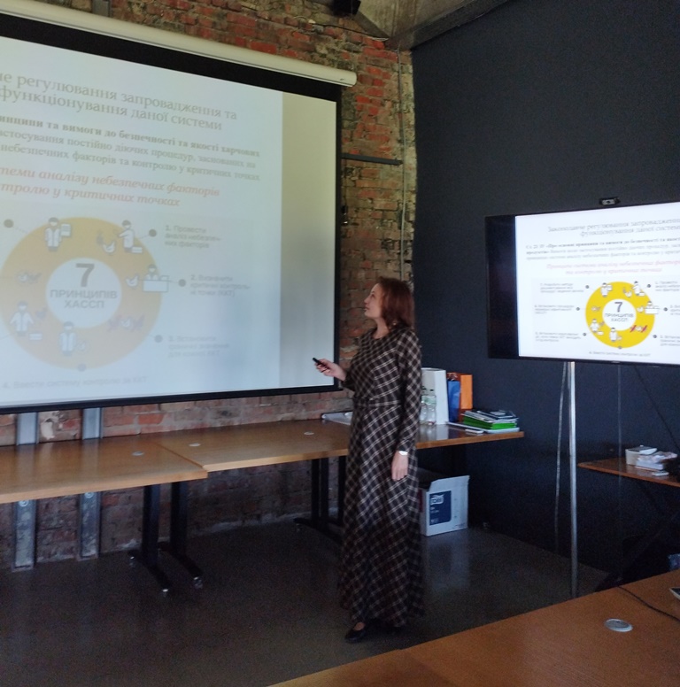 До програми навчання була залучена доцентка кафедри експертизи харчових продуктів Вікторія Кійко, яка поділилися зі слухачами практичним досвідом розроблення та впровадження НАССР на підприємствах харчової промисловості, а також розглянула особливості впровадження цієї системи на елеваторах.