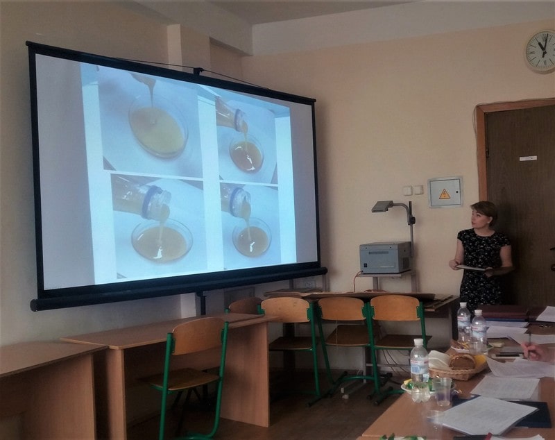 Магістранти не тільки продемонстрували свої наукові дослідження на постерах та в мультимедійних презентаціях, а ще й пригостили членів ЕК й усіх присутніх зразками нових видів молочної продукції, які власноруч виробили за своїми розробленими технологіями.