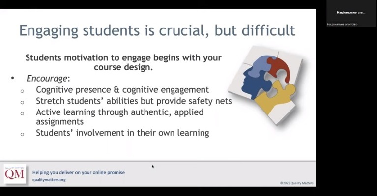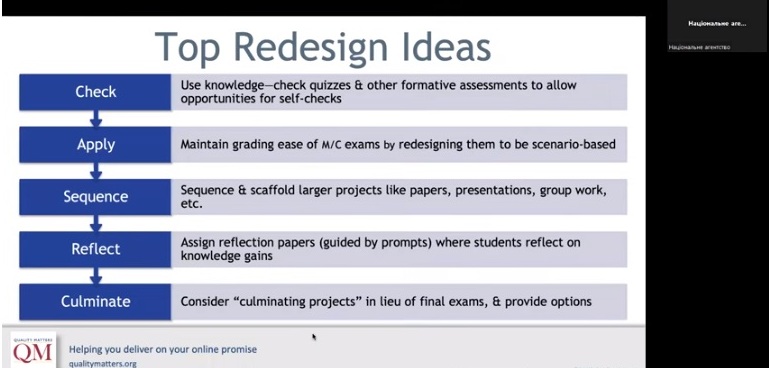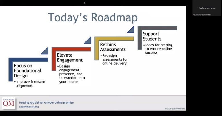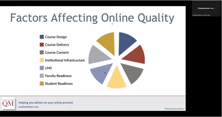 Викладачі університету долучилися до вебінару «Забезпечення якості онлайн-освіти», організованого Національним агентством із забезпечення якості вищої освіти спільно з глобальною організацією із забезпечення якості Quality Matters (QM).
