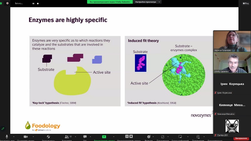 Фахівець у доступній формі розповів про будову і механізм дії ферментів на субстрат. Студенти ознайомились із основними функціями ферментів, як біологічних каталізаторів і можливостями їх використання у технологічних процесах для покращення смакових властивостей хліба, реологічного стану йогуртів, дозрівання ферментованих напоїв, тощо.