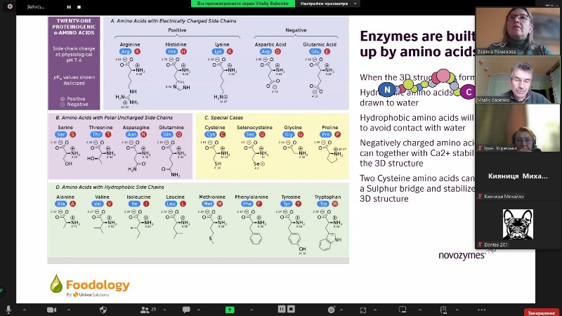 Здобувачі освіти і викладачі дізналися про нові напрями використання ферментів в індустрії харчування, тенденції безвідходних програм із використанням комплексу ферментів. Увага слухачів була зосереджена на позитивній спрямованій дії ферменту на сировину (субстрат) з повною інактивацією його після виконання своєї функції.
