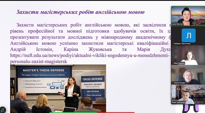 Гарантка програми, доцентка Ліана Мазник презентувала аналіз якості освітньої діяльності, кадрового, методичного й наукового забезпечення, а також виконання рекомендацій експертів. Було визначено ключові напрями розвитку з урахуванням сучасних освітніх трендів і потреб ринку праці.