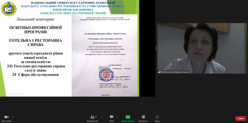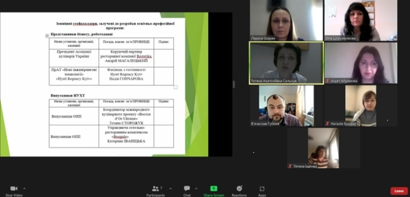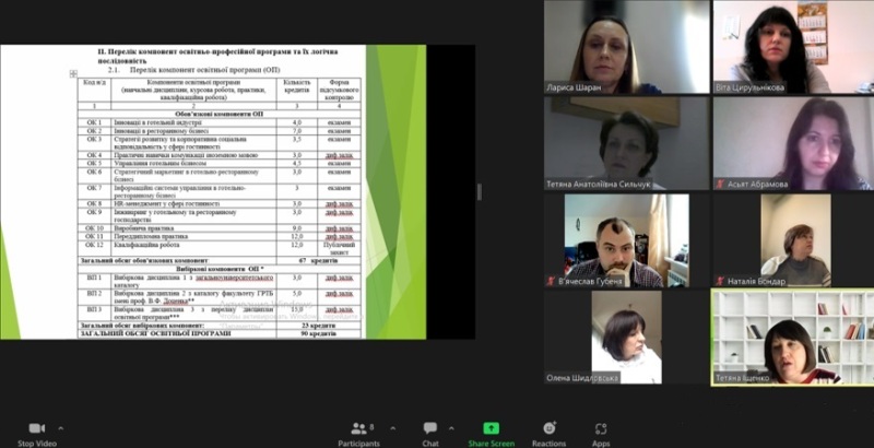 Під керівництвом гарантки програми бакалаврського рівня, деканки факультету готельно-ресторанного та туристичного бізнесу імені проф. В.Ф. Доценка Віти Цирульнікової і гарантки програми магістерського рівня, професорки кафедри готельно-ресторанної справи Тетяни Сильчук групами були проаналізовані сильні та слабкі сторони, основні напрями удосконалення, можливості ліквідації слабких сторін і перспективи розвитку освітніх програм.