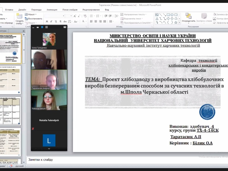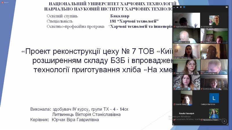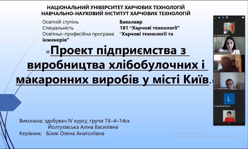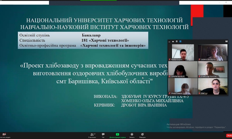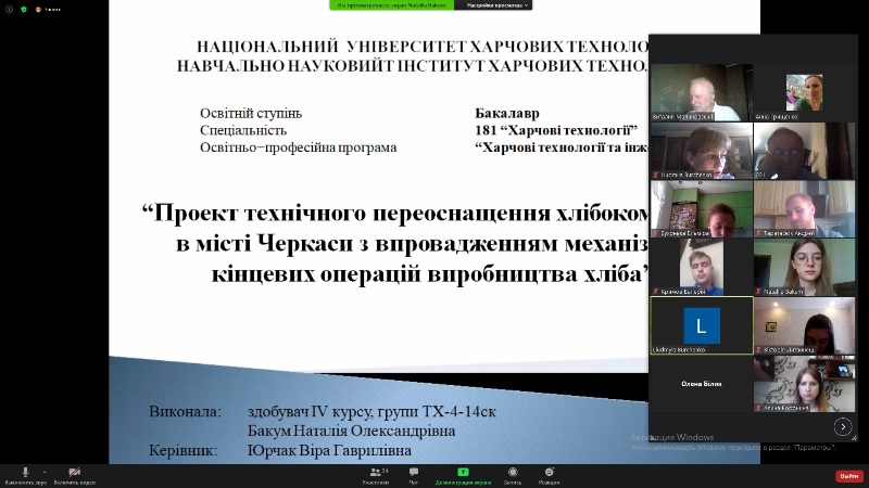 На кафедрі технології хлібопекарських і кондитерських виробів завершилися захисти кваліфікаційних робіт здобувачів денної форми навчання освітнього ступеня «Бакалавр» спеціальності 181 «Харчові технології», освітньо-професійної програми «Харчові технології та інженерія».