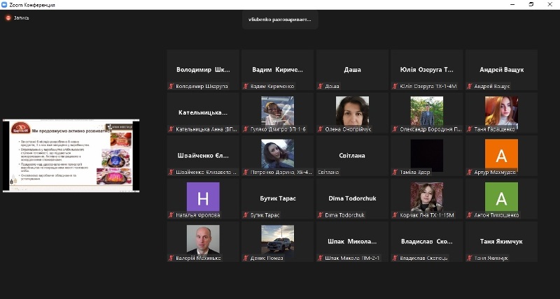 Цього дня відбулися вебінари від ТОВ «ПЕРШИЙ СТОЛИЧНИЙ ХЛІБОЗАВОД» та ПП «Алма-Веко, Фуд». Це були надзвичайно інформативні й одночасно дуже теплі зустрічі, адже 80% керівного складу ТОВ «ПЕРШИЙ СТОЛИЧНИЙ ХЛІБОЗАВОД» і засновники ПП «Алма-Веко, Фуд» – випускники нашого університету. Тому, спікери наголосили, що для них НУХТ – виш №1 серед галузевих закладів вищої освіти.
