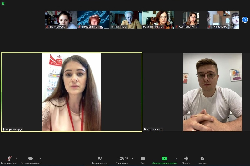 Захисти кваліфікаційних робіт на кафедрі біотехнології і мікробіології часто цікавлять і різноманітних фахівців галузі біотехнології. І черговий день захистів не став винятком. До відеоконференції приєдналася фахівчиня фармацевтичного виробництва ТОВ «Фармекс Груп» – одного з найбільших фармацевтичних підприємств України, побудованого відповідно до вимог GMP за американським проєктом в м. Бориспіль, пані Тетяна. Отримавши чимало позитивних вражень від цьогорічних захистів, речниця «Фармекс Груп» запропонувала новоспеченим бакалаврам-біотехнологам взяти участь у конкурсах на заміщення вакантних посад на підприємстві, зазначивши, що маючи за плечима вищу освіту рівня «бакалавр», можна спробувати поєднати вдосконалення практичних фахових навичок із продовженням навчання в магістратурі. А деканка факультету біотехнології та екологічного контролю Наталія Грегірчак і завідувачка кафедри Тетяна Пирог наголосили на зацікавленості у співпраці з фармпідприємством із точки зору практичної підготовки майбутніх фахівців-біотехнологів.