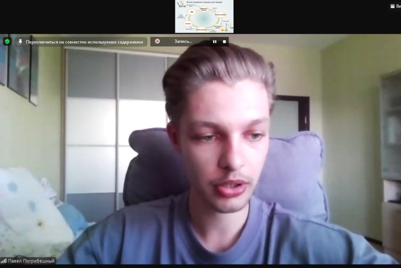 Естафету напутніх виступів прийняв сьогоднішній здобувач вищої освіти ступеня «доктор філософії» за спеціальністю 162 «Біотехнології та біоінженерія» Ігор Ключка, який поєднує навчання та роботу на посаді фахівця (з дистанційного навчання) ІІ-ої категорії корпорації «Артеріум». Ігор поділився власним досвідом працевлаштування з дипломом бакалавра-біотехнолога НУХТ, адже саме на базі цього диплому йому без особливих зусиль вдалось влаштуватися на посаду техніка-технолога відділу трансферу технологій ПАТ НВЦ «Борщагівський хіміко-фармацевтичний завод», де він працював, навчаючисьу магістратурі кафедри біотехнології і мікробіології. Тож, він продемонстрував як, маючи відповідний багаж знань, умінь і навичок, отриманих під час навчання і виконання наукової роботи, можна вдало будувати кар’єру паралельно з навчанням.