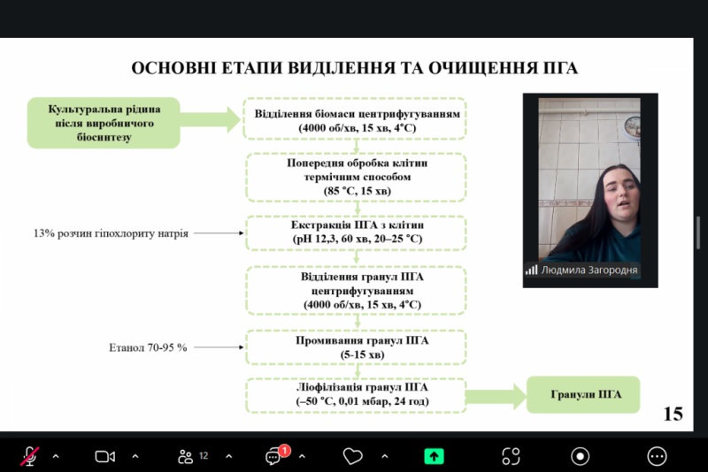 Важливим кроком у напрямі інтернаціоналізації освітнього процесу став захист Ярославою Князєвою кваліфікаційної роботи «Biosynthesis of Gramicidin by Aneurinibacillus migulanus» англійською мовою (керівниця – к.т.н., доцентка Вікторія Красінько). Нагадаємо, раніше під керівництвом Вікторії Красінько англомовний захист кваліфікаційної роботи «Biosynthesis of Mesorhizobium ciceri ND-64 biomass for the purpose of obtaining inoculant for chickpeas» успішно здійснив Олег Висоцький.