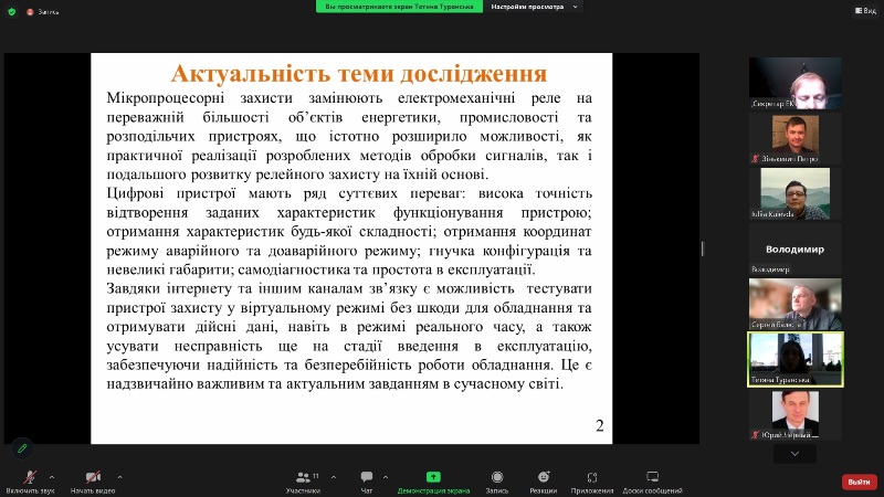 Побажавши здобувачам освіти успішного захисту, комісія заслухала доповіді магістрантів по їх кваліфікаційних роботах. Здобувачі гідно показали свої знання та вміння у вирішенні питань електропостачання та автоматизації електроенергетичних об’єктів і впевнено відповіли на численні питання комісії.