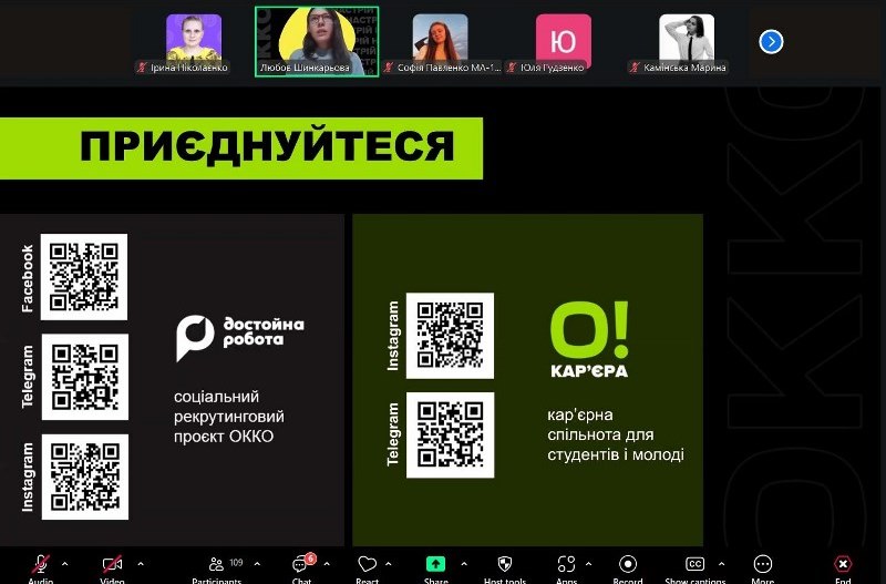 13 жовтня відбулася гостьова онлайн-лекція від мережі АЗК «ОККО» на тему «Алгоритм побудови бренду роботодавця: для залучення та утримання талантів» для здобувачів спеціальностей «Маркетинг» і «Менеджмент» освітніх ступенів «бакалавр», «магістр» і «доктор філософії». Спікеркою стала Любов Шинкарьова – старшв фахівчиня із розвитку бренду роботодавця ОККО, експертка у сфері HR-маркетингу та корпоративної культури. До лекції доєдналися студенти й інших економічних спеціальностей Навчально-наукового інституту економіки і управління.