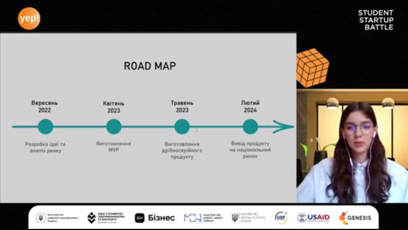 До цієї зустрічі доєдналася Аліна Карчевська, яка лише у лютому 2023 року на фіналі Національного конкурсу студентських стартапів представляла свій командний проєкт «Teather» як студентка, а нині, продовжуючи працювати над ним, пройшла інкубатор YEP, і є вже частиною команди YEP. Тоді її проєкт став переможцем Всеукраїнського конкурсу студентських стартапів, і Аліна, як СЕО команди, побувала в Естонії, де його представляла.