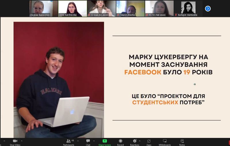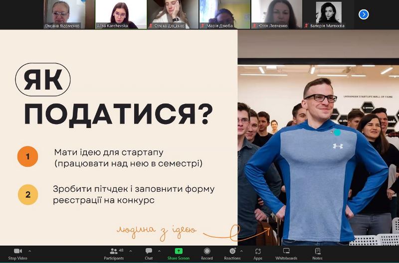Здобувачі усіх спеціальностей освітнього ступеня «магістр», які вивчають дисципліну «Інноваційне підприємництво та управління стартап-проєктами», а також здобувачі освітнього ступеня «бакалавр» спеціальності «Економіка» в рамках освітньої компоненти «Інновації» разом зі своїми викладачками – в.о. завідувача кафедри економіки і права Юлією Левченко та доценткою кафедри Оксаною Відоменко долучилися до позапланової гостьової лекції від організаторів Всеукраїнського проєкту «Підприємницький університет».