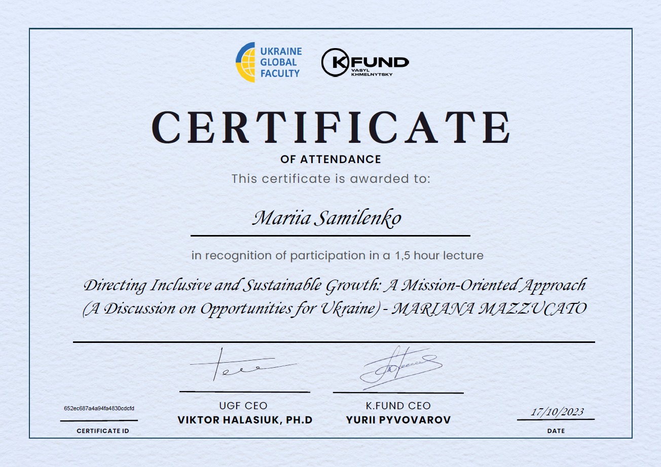 Наші учасники висловлюють глибоку вдячність Маріані Мацукато за цікавий лекційний матеріал і команді Ukraine Global Faculty за модерацію заходу.