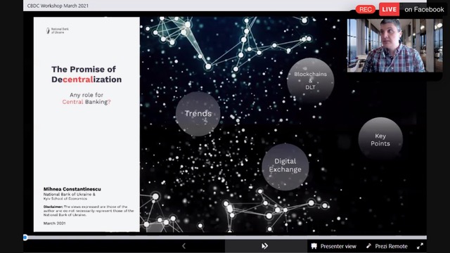 Також на вебінарі обговорювалися актуальні питання децентралізації коштів. Наразі зростає складність у здійсненні торгівлі через інформаційну асиметрію, проблеми у правовому застосуванні при укладенні контрактів. Значна частина часу була приділена Кліринговій палаті, особливостям кредитування та зв’язку між ліквідністю і кредитом, «blockchain».