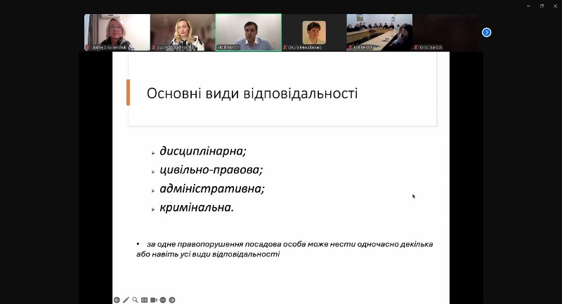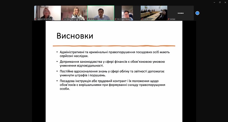 Слухачі мали змогу поглибити знання щодо видів юридичної відповідальності, що покладається на бухгалтера при виконанні посадових обов’язків, були детально ознайомлені зі складом та структурою дисциплінарної, цивільно-правової, адміністративної та кримінальної відповідальності.