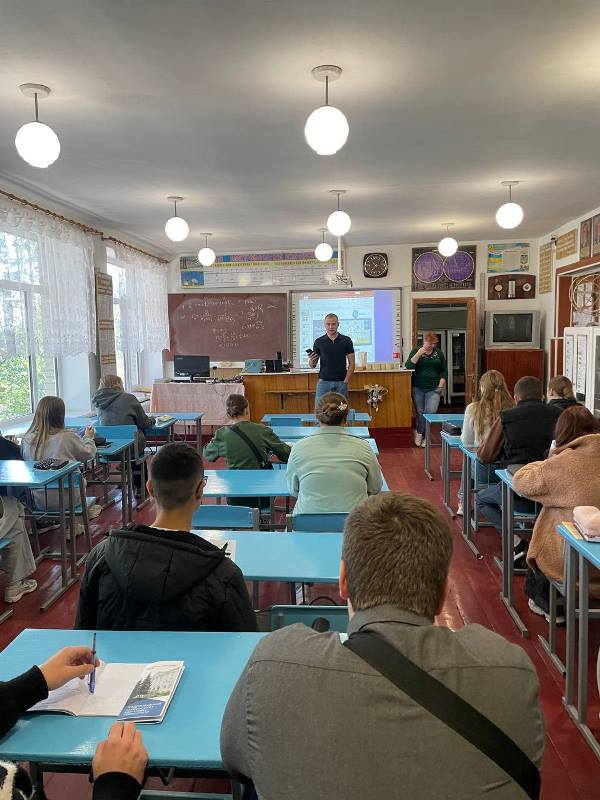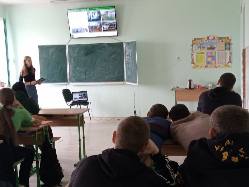 Доцентка кафедри Світлана Мусійчук також заохотила свого здобувача групи ГС-3-5 Станіслава Рогальського до проведення профорієнтації у Бершадському ЗЗСО І-ІІІ ступенів №1 Гайсинського району Вінницької області. Станіслав відвідав школу, щоб поділитися своїм досвідом навчання та розповісти майбутнім вступникам про переваги навчання в НУХТ і цікавинки студентського життя.