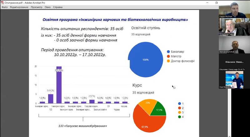 Під час обговорення якості навчального процесу завідувач кафедри машин і апаратів харчових та фармацевтичних виробництв Олександр Гавва проаналізував результати зимової сесії здобувачів освітньої програми та запропонував надати пропозиції щодо його покращення в умовах військового стану.