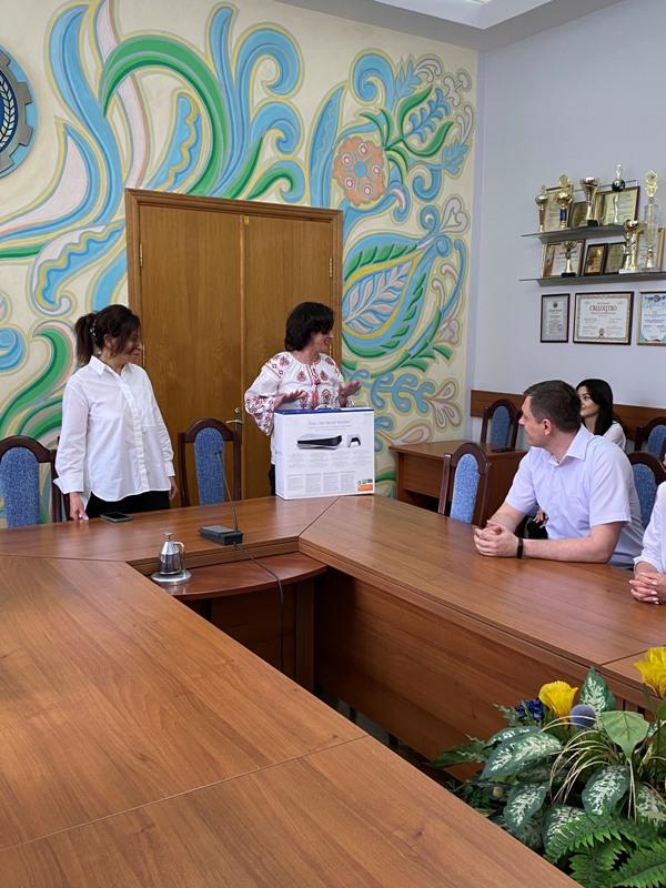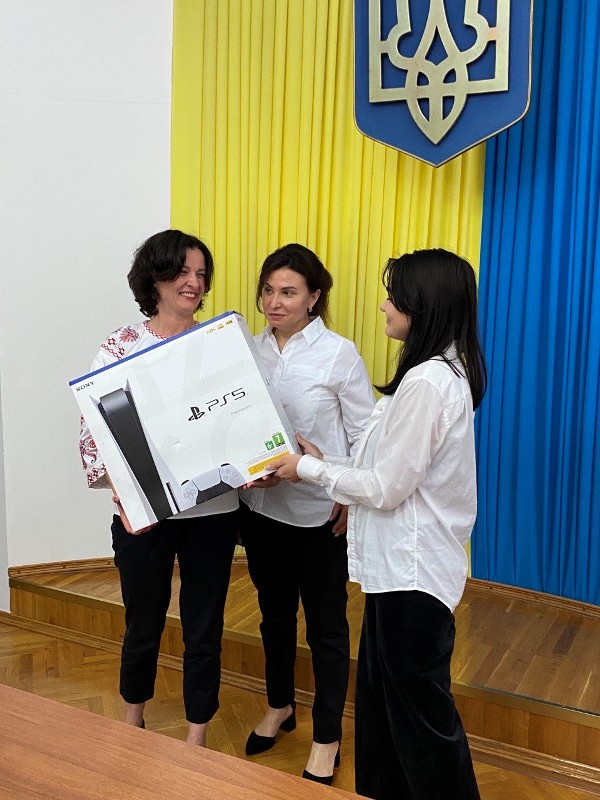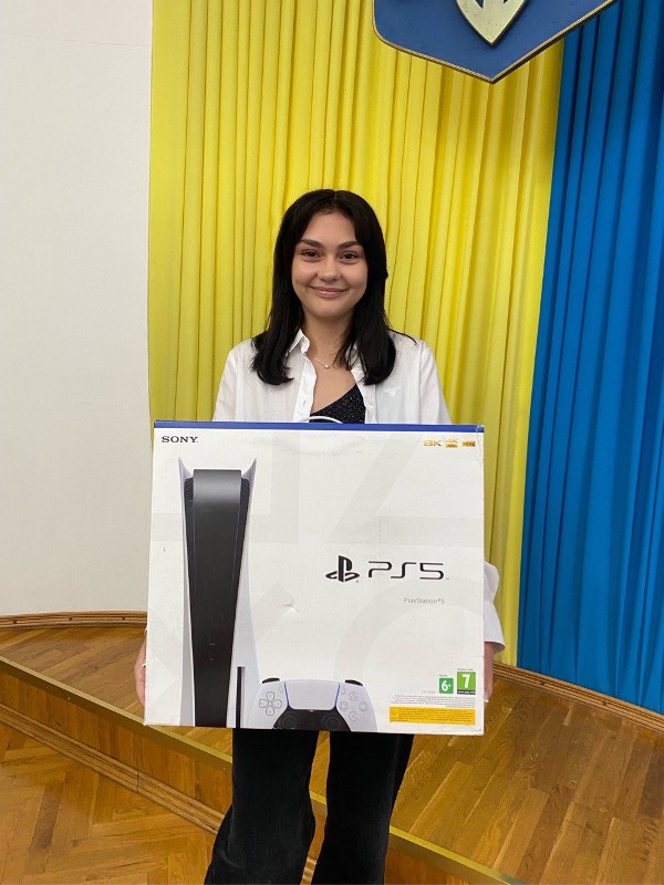 26 червня до університету завітали представники Приват-Банку, щоб привітати Владлену і вручити їй приз – ігрову приставку PlayStation 5.
