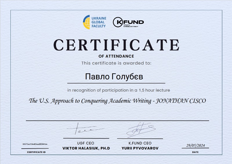 Лекція Jonathan Cisco стала чудовим доповненням до навчального процесу. Вона не лише збагатила знання здобувачів освіти, але й надихнула на подальший розвиток у сфері академічного письма.