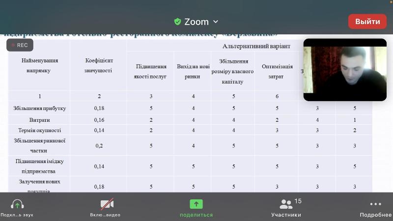 На кафедрі економіки і права працювала Екзаменаційна комісія, очолювана завідувачем кафедри, професором Анатолієм Заїнчковським, яка заслухала захисти дипломних робіт із метою присвоєння освітнього ступеня «бакалавр» зі спеціальності 051 «Економіка» здобувачам заочної форми навчання, в т. ч. скороченого терміну навчання. На захисті також були присутні викладачі кафедри та гості – представники компанії PwC, здобувачі молодших і старших курсів.