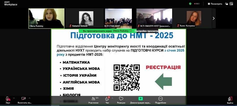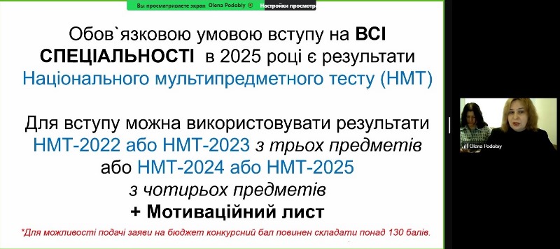 Значна частина зустрічі була присвячена умовам вступу випускників фахових коледжів до університету, підготовці до успішного складання НМТ й самому НМТ-2025. Олена Подобій і Юлія Запорожець роз’яснили, яким чином вступники можуть підвищити свій конкурсний бал, надали контакти комунікаційних каналів для вступників і запросили долучатися до Днів вступника НУХТ, найближчий із яких відбудеться у онлайн-форматі 25 січня. Завершилася зустріч традиційною Q&A-сесією, у ході якої студенти коледжів отримали відповіді на всі свої запитання.