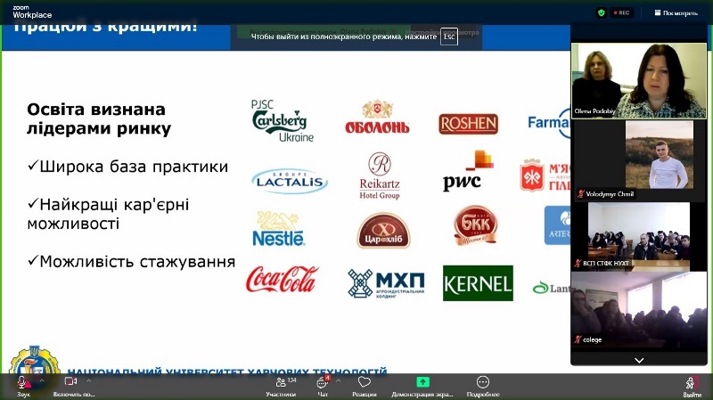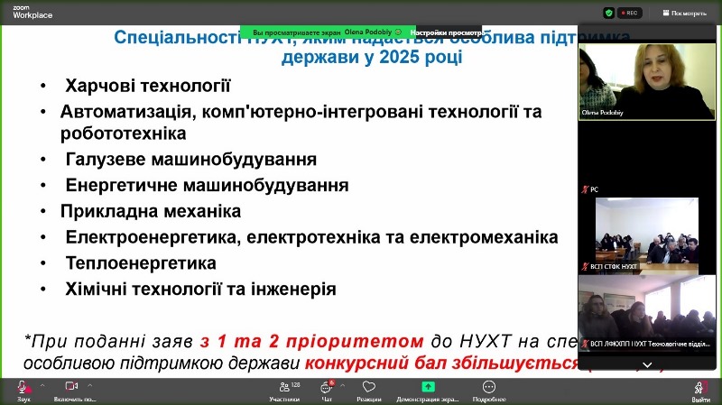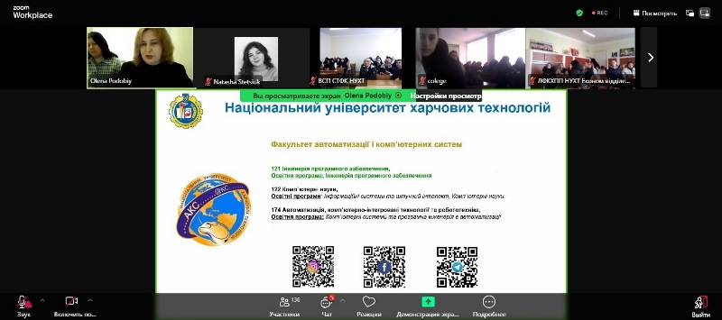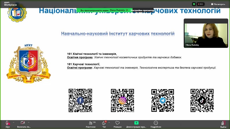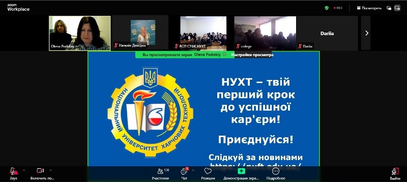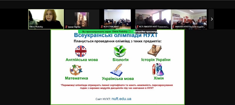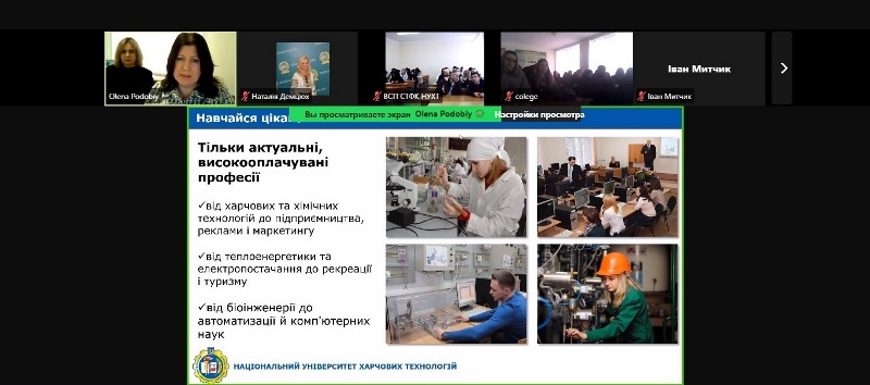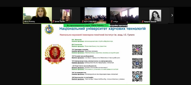 Директорка Центру моніторингу якості та координації освітньої діяльності університету Олена Подобій і відповідальна секретарка Приймальної комісії Юлія Запорожець ґрунтовно висвітлили всі сторони діяльності нашого вишу, ознайомили зі широким спектром спеціальностей і освітніх програм, за якими здійснюється підготовка фахівців для всіх галузей економіки, розповіли про можливості, що мають здобувачі освіти НУХТ для навчання, наукових досліджень, національної і міжнародної академічної мобільності, розвитку своїх hard і soft skills.