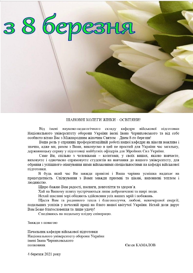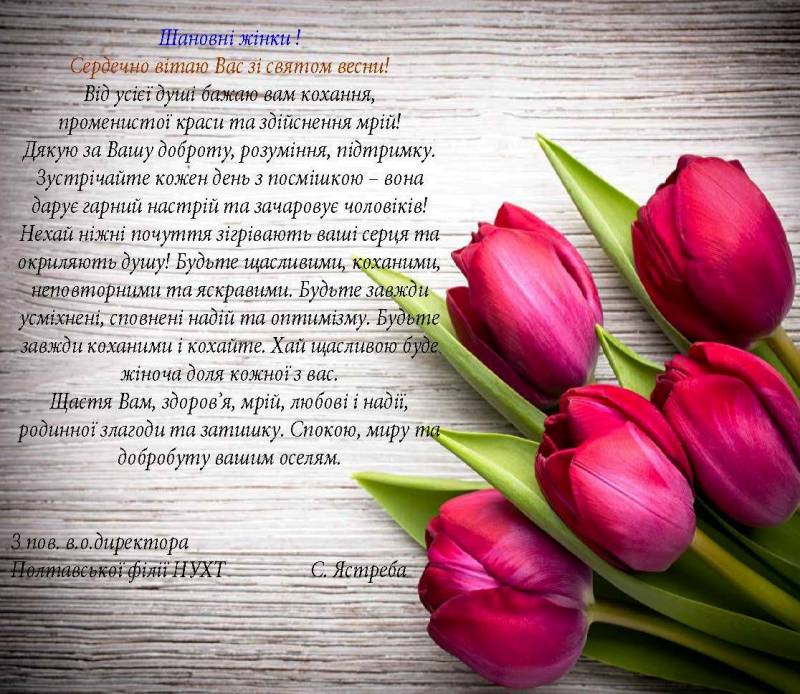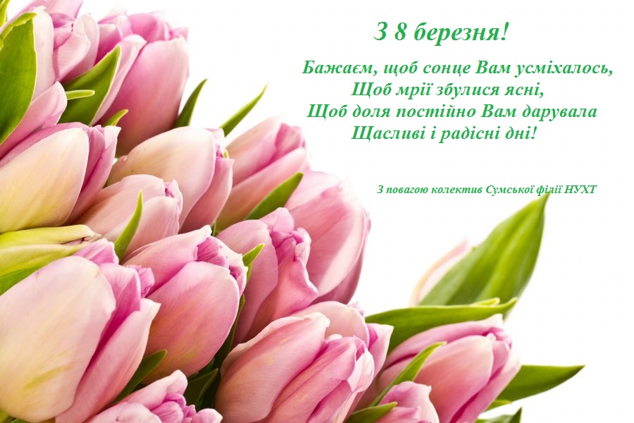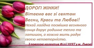 Наближається найчарівніше весняне свято – 8 березня. До університету почали надходити вітання прекрасній половині колективу НУХТ.