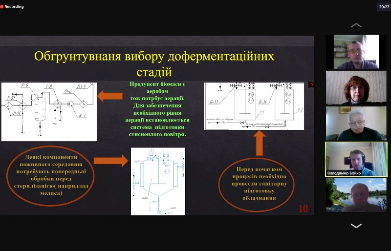 Після завершення доповідей члени комісії мали змогу задати уточнюючі питання про умови культивування та накопичення, характеристику цільових продуктів біосинтезу та локалізацію їх накопичення в клітинах, щодо пропозицій технологічних рішень та їх реалізації на апаратурній і технологічній схемах. І вже після відповідей на запитання, члени комісії радились та приймали зважене рішення щодо оцінки.
