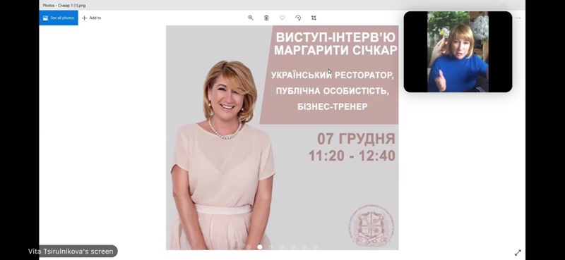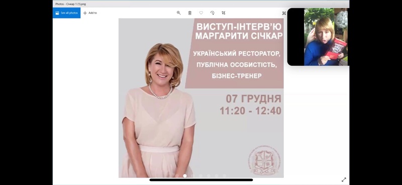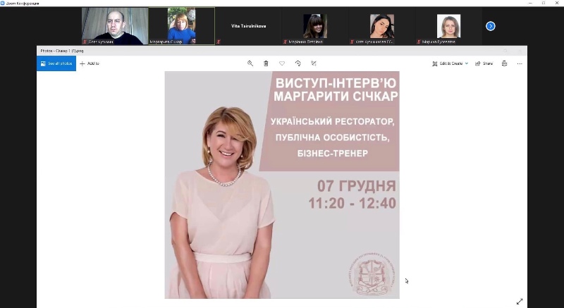 Здобувачі вищої освіти факультету готельно-ресторанного та туристичного бізнесу мали неймовірну можливість зустрітися online з автентичною і харизматичною Маргаритою Січкар – українською рестораторкою, успішною бізнес-вумен, телезіркою та інфлюенсером.