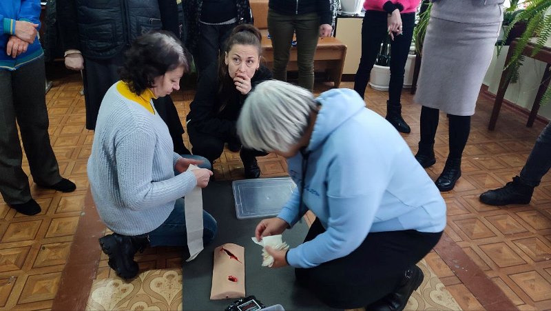 У Сумському фаховому коледжі нашого університету відбулося друге заняття з домедичної допомоги, яке зміцнило знання та навички персоналу у сфері безпеки та екстрених ситуацій. Це ініціатива громадської організації «Купина», керівником-інструктором якої є Євген Титаренко.