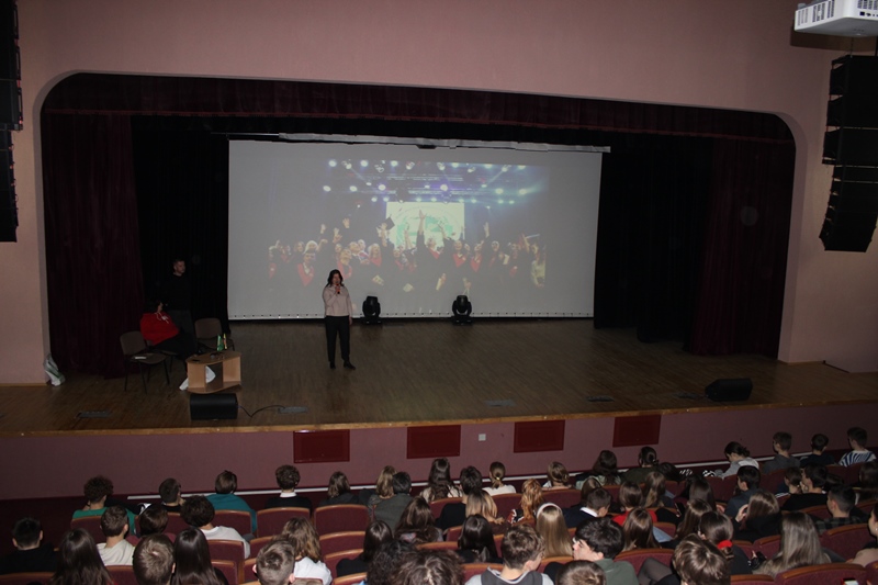 Значну увагу зустрічі зі старшокласниками присвятили особливостям вступної кампанії 2024 року, про які розповів Артем Ущаповський й підказав, як можна підвищити конкурсний бал при вступі – взяти участь у Всеукраїнських олімпіадах НУХТ для старшокласників, перший тур яких саме розпочався в університеті, а також підготуватися до НМТ на підготовчих курсах НУХТ, випускникам яких нараховуються додаткові бали при вступі до нашого вишу.