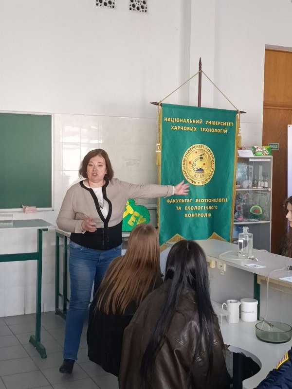 Потім на гостей чекала можливість стати студентом на день від декантеси факультету біотехнології та екологічного контролю, к.т.н., доцентки Наталії Грегірчак. Вона розповіла про всі переваги навчання в нашому університеті, можливість власного розвитку, а також про популярність на ринку праці висококваліфікованих фахівців спеціальностей Е2 «Екологія» та G21 «Біотехнології та біоінженерія». Також викладачка запросила ліцеїстів стати учасниками Екологічних і Біотехнологічних студій, які традиційно щороку проводяться в нашому університеті. Ну, і звісно, не обійшлося без подарунків, від стейкхолдера – потужної корпорації «Артеріум».