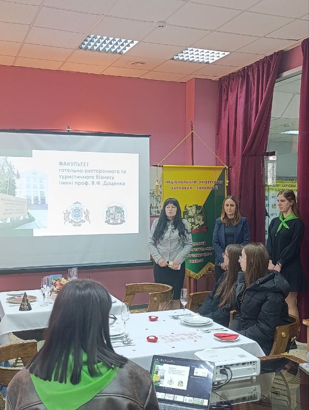 Наступне знайомство зі сферою гостинності відбулось на факультеті готельно-ресторанного та туристичного бізнесу імені проф. В. Ф. Доценка, який представила декантеса, к.т.н., доцентка Віта Цирульнікова. Вона розповіла учням про спеціальності, активне студентське життя, закордонну практику, професійні лекторії від фахівців індустрії гостинності та провела міні-екскурсію факультетом.