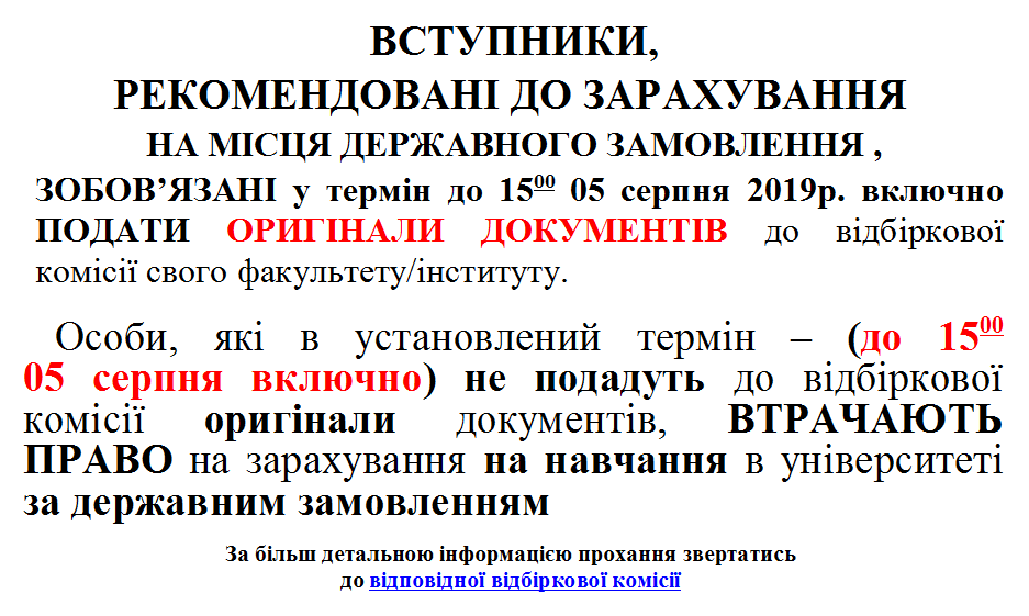 Рекомендовані до зарахування на місця державного замовлення - 2019 - Бакалавр зі скороченим терміном навчання