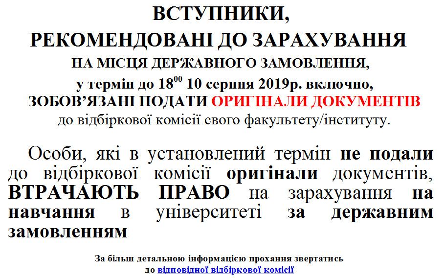 Рекомендовані до зарахування на місця державного замовлення - Магістр із ЗНО - 2019