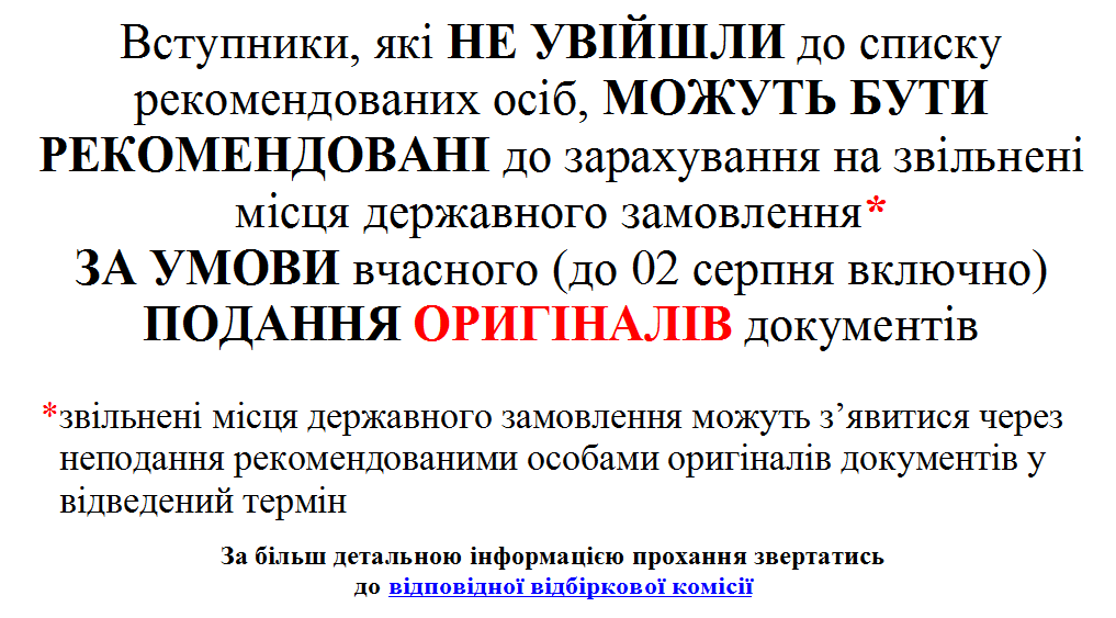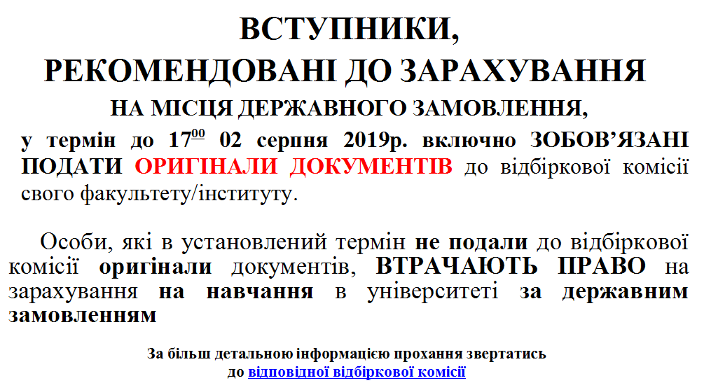 Рекомендовані до зарахування на місця державного замовлення - Магістр без ЗНО - 2019
